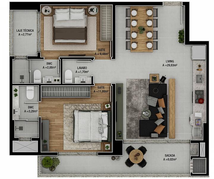 76,07 m² de área privativa