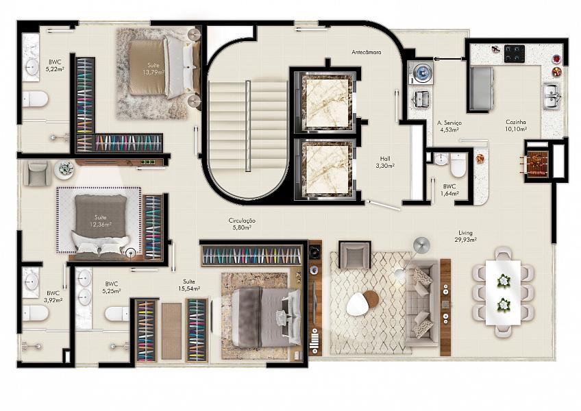 3 dormitórios (3 suítes)